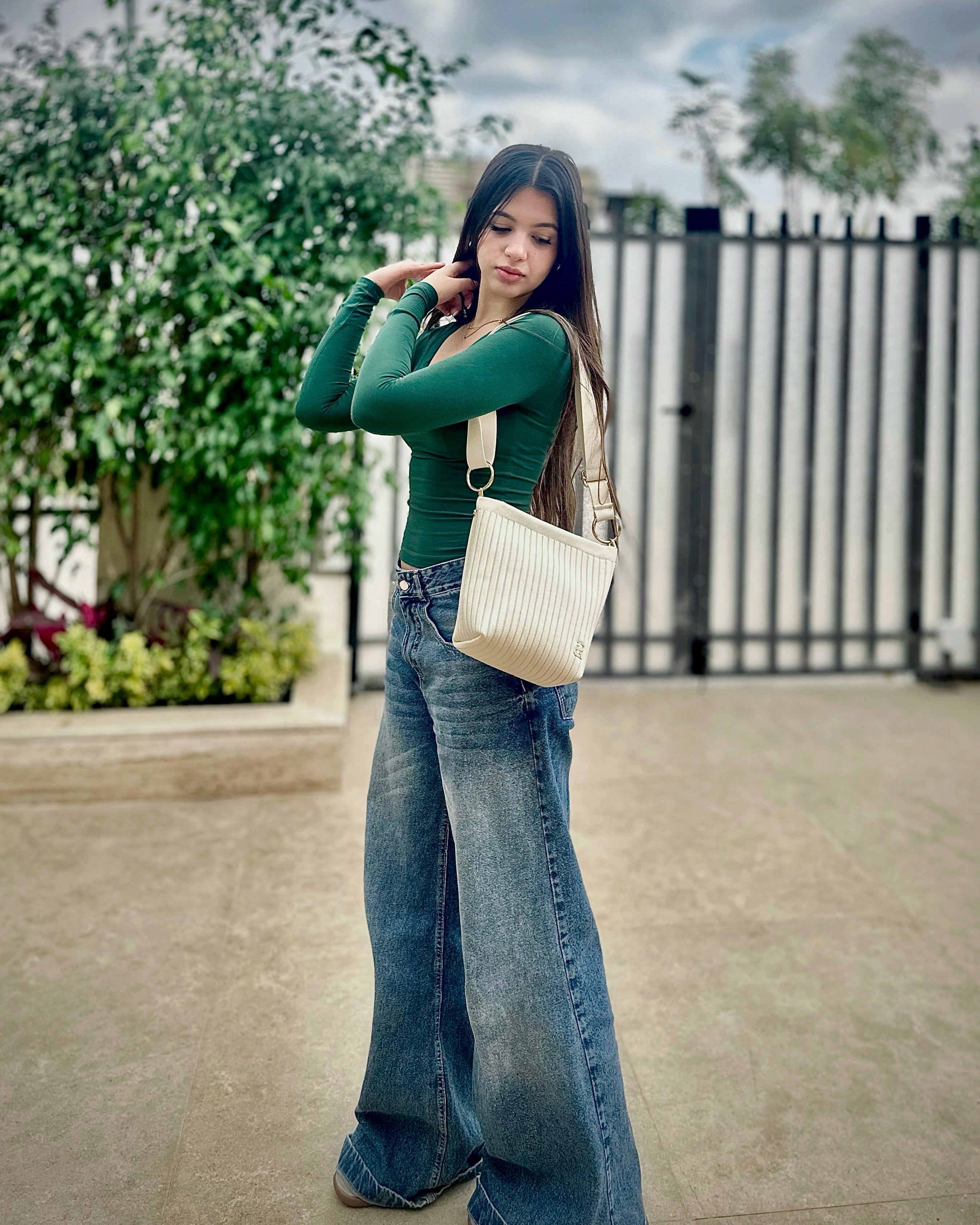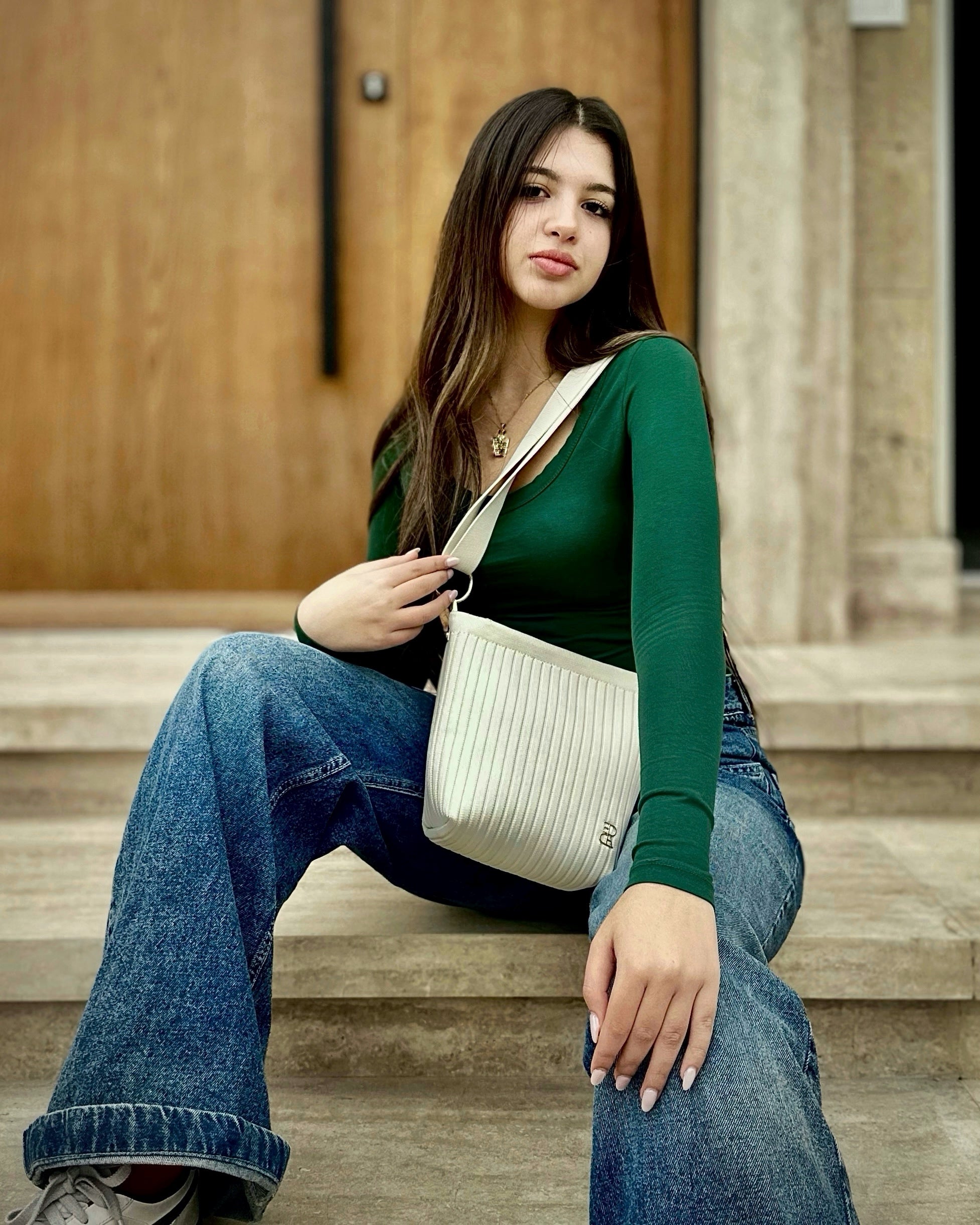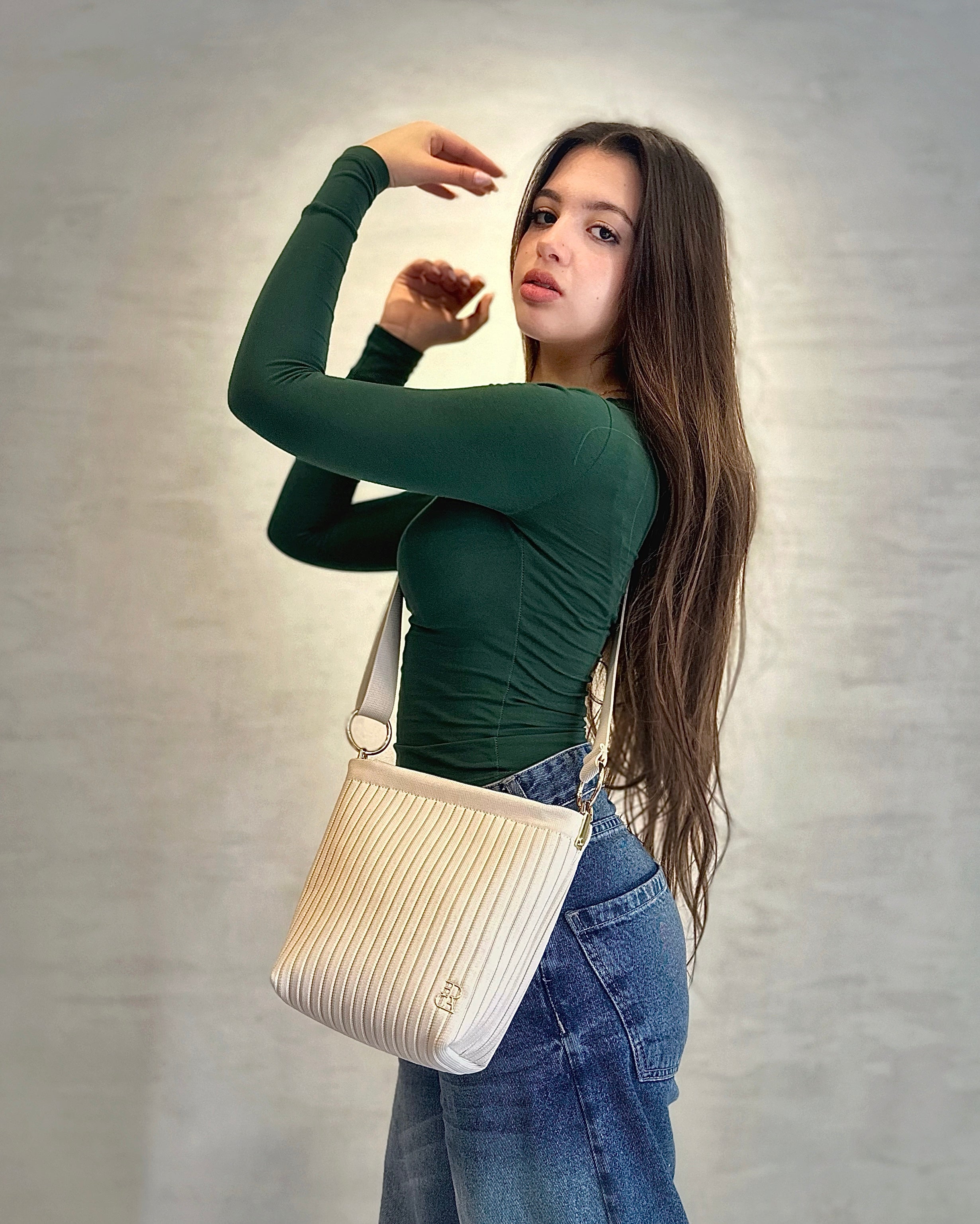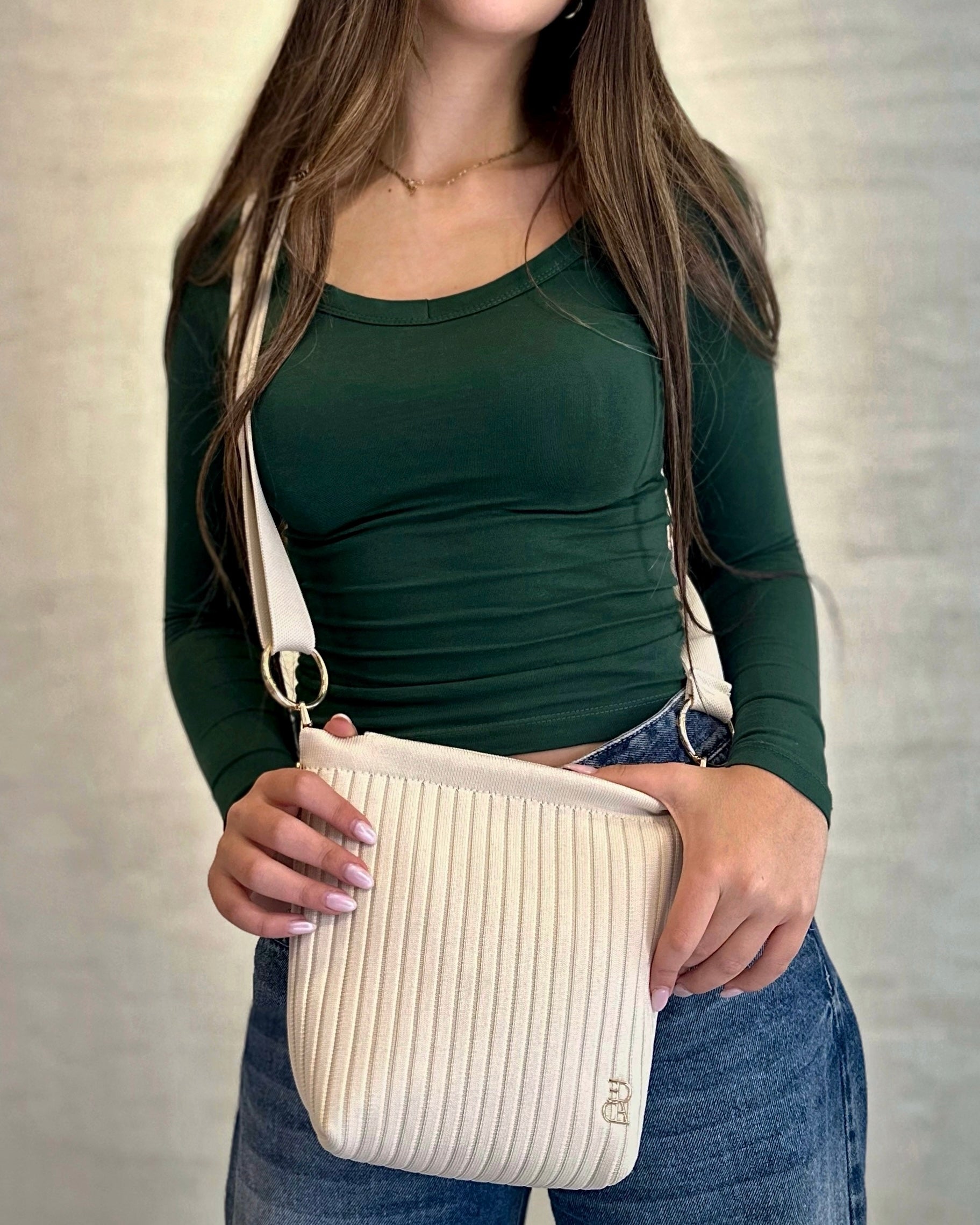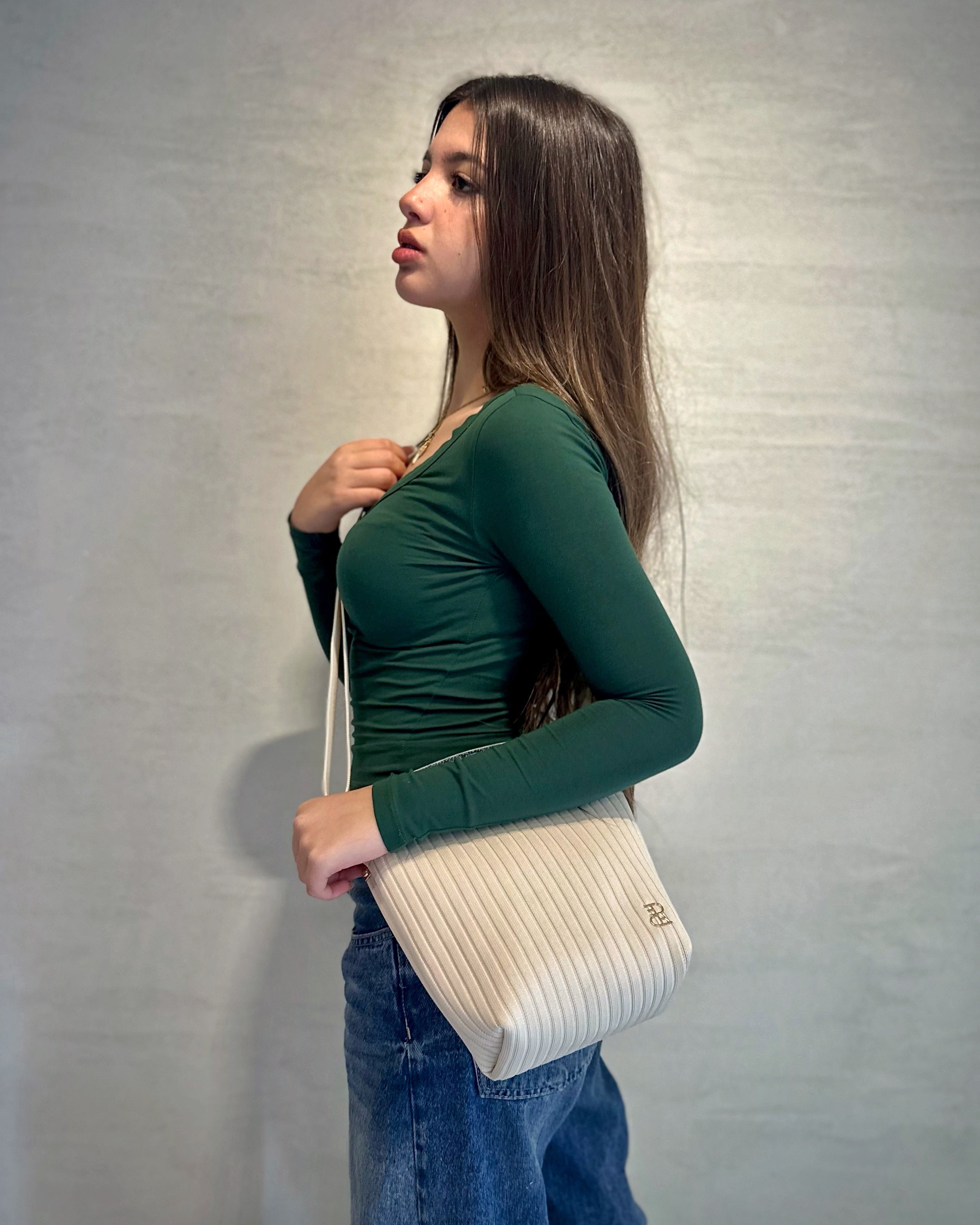 Crafted from premium ribbed fabric, this small-to-medium sized beauty delivers a rich, textured look that feels as luxurious as it looks. The fabric is thick and ultra-soft to the touch, yet specially structured to hold its shape all day. The secure zipper closure keeps your essentials safe while maintaining a clean, minimal finish. Wear it crossbody with an oversized sweater and sneakers for cozy sophistication or match it with monochrome outfits to let the ribbed texture stand out beautifully.