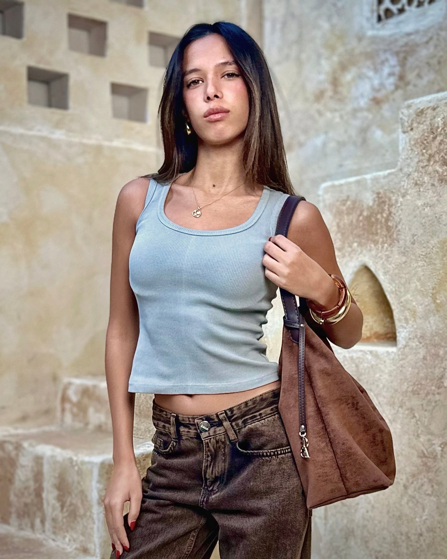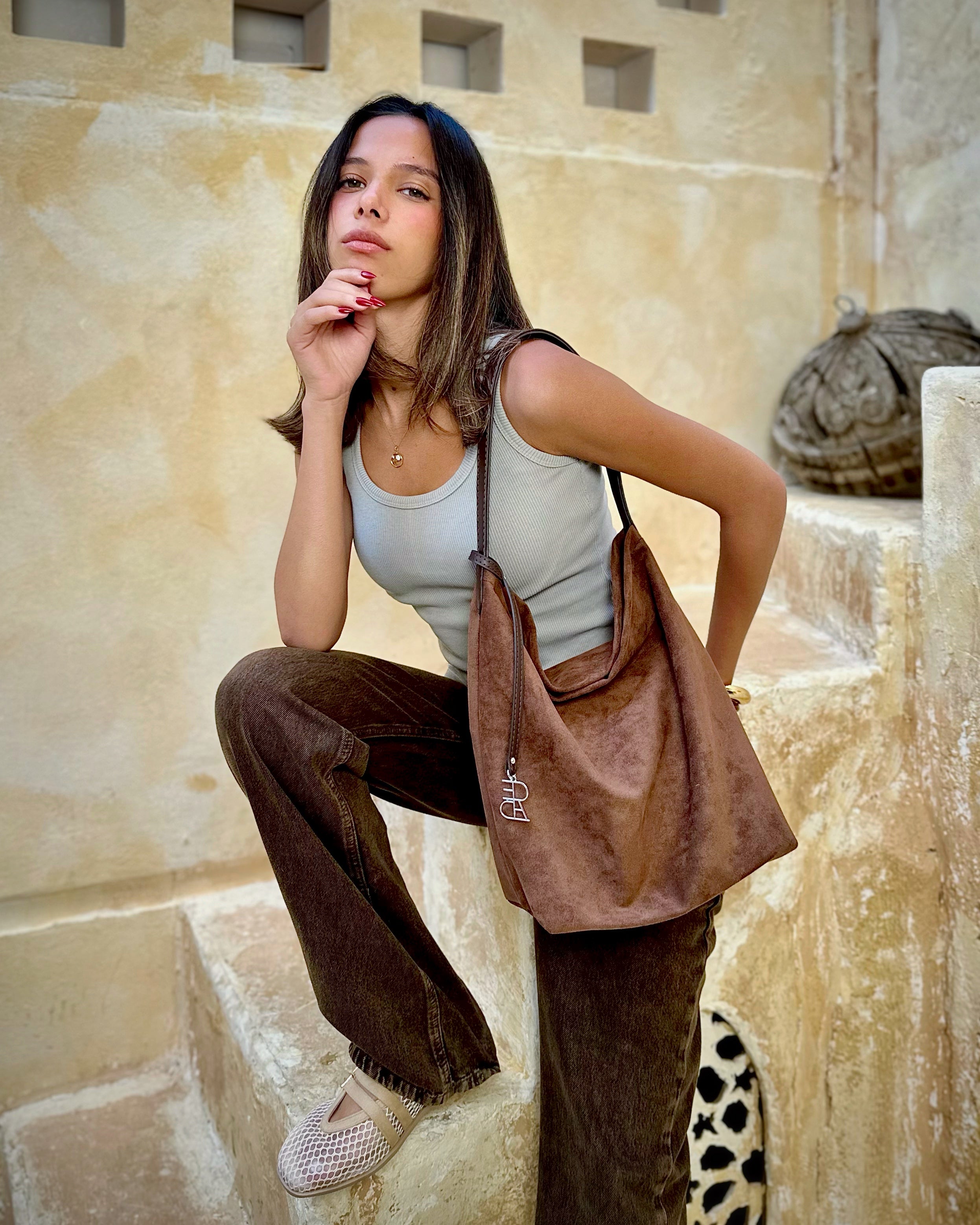 SUEDE SLOUCHY HOBO - BROWN